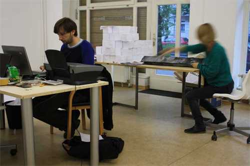 Ausstellungsraum zu präsentieren. Dieses Projekt ist geprägt von einer bewusst kurzfristigen Arbeitsweise und limitiert durch die gesetzten Einschränkungen der Arbeitsmittel im Büro. Die vorliegenden Projekte haben wir konzentriert auf Themen, die unserer jeweiligen künstlerischen Praxis entsprechen und bei denen wir uns treffen können oder aufeinander prallen - wie zum Beispiel Erinnerung, Geschichte, Zeichen, Markierungen und Oberflächen sowie Standard vs. Individuum." (Heidi Hove und Jens Axel Beck, Berlin im Mai 2010) Sowohl Heidi Hove als